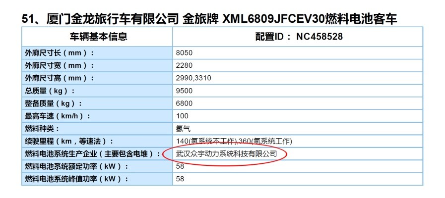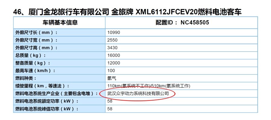 日前,国家工信部发布了2019年第7批《新能源汽车推广应用推荐车型目录》,装载了众宇动力TWLQ58燃料电池发动机的2款厦门金龙旅行车有限公司燃料电池客车成功入选该目录。