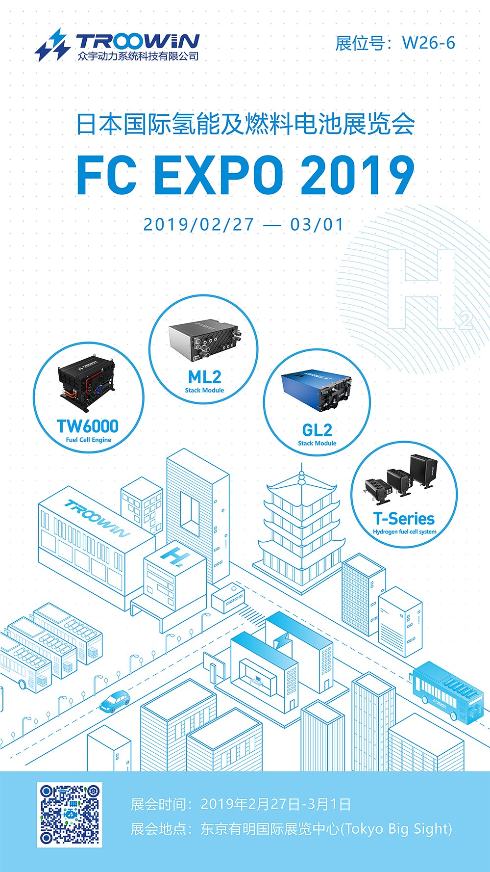 武汉众宇动力系统科技有限公司将携带TW系列氢燃料电池发动机、GL2/ML2电堆模块、风冷燃料电池系统参加此次展会。众宇动力现场展位号为W26-6,在此,我们诚挚邀请您的到来,欢迎各位莅临交流!
