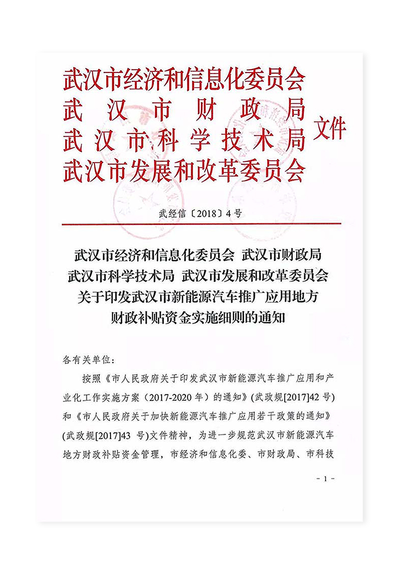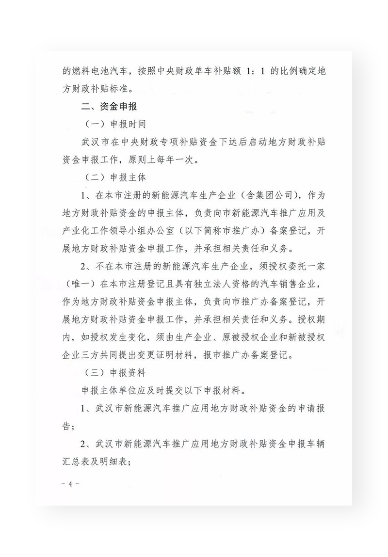 【政策快报】武汉市发布2018年新能源汽车补贴细则,燃料电池汽车按照中央财政单车补贴额1:1的比例确定地方财政补贴