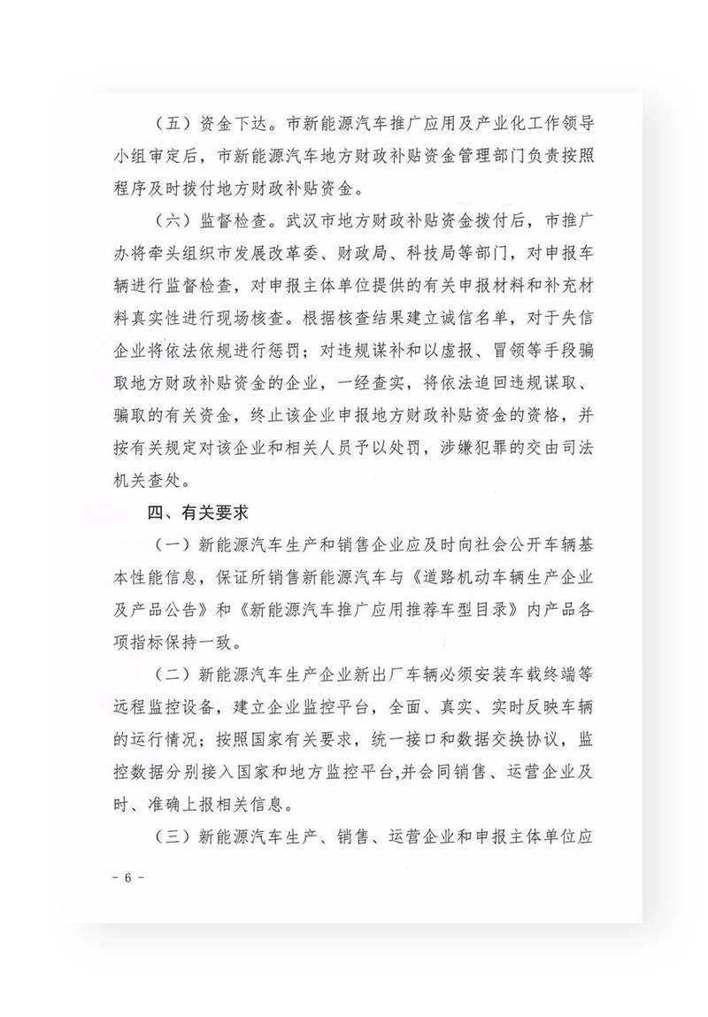 补贴对象:武汉市新能源汽车推广应用地方财政补贴资金(以下简称地方财政补贴资金)补贴的对象是消费者。新能源汽车生产或经销企业在武汉销售新能源汽车车辆时, 应将销售价格和可获得的中央财政补贴资金、地方财政补贴资金金额向消费者公示, 并按照扣减中央和地方财政补贴资金后的金额与消费者进行结算。