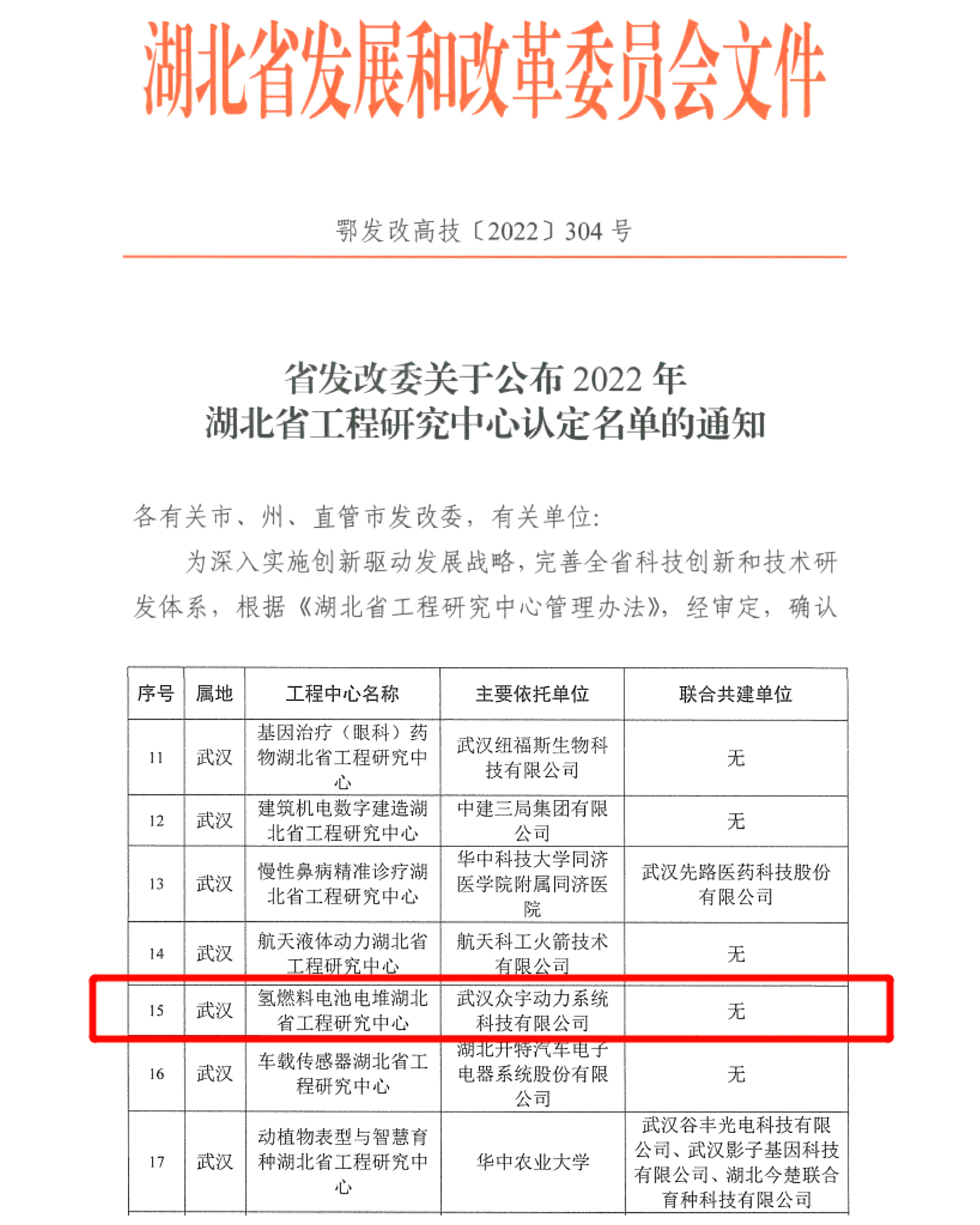 湖北省首个!众宇被认定为省氢燃料电池电堆工程研究中心